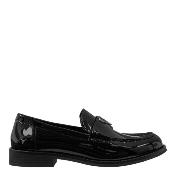 Polite, women’s black patent loafers feature a stylish strap across the upper with the iconic Windsorsmith bull logo ornament detail. A playful twist on the classic loafer, Polite offers a soft foam/jersey lining and a non-slip flexible rubber sole.